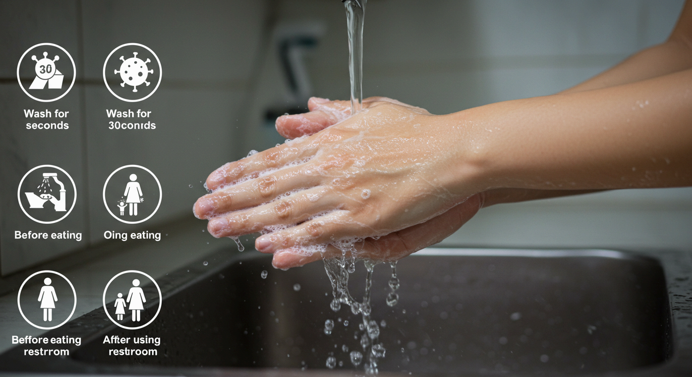 | 손씻기 | 흐르는 물과 비누로 30초 이상, 특히 외출 후/화장실 후/식사 전 |