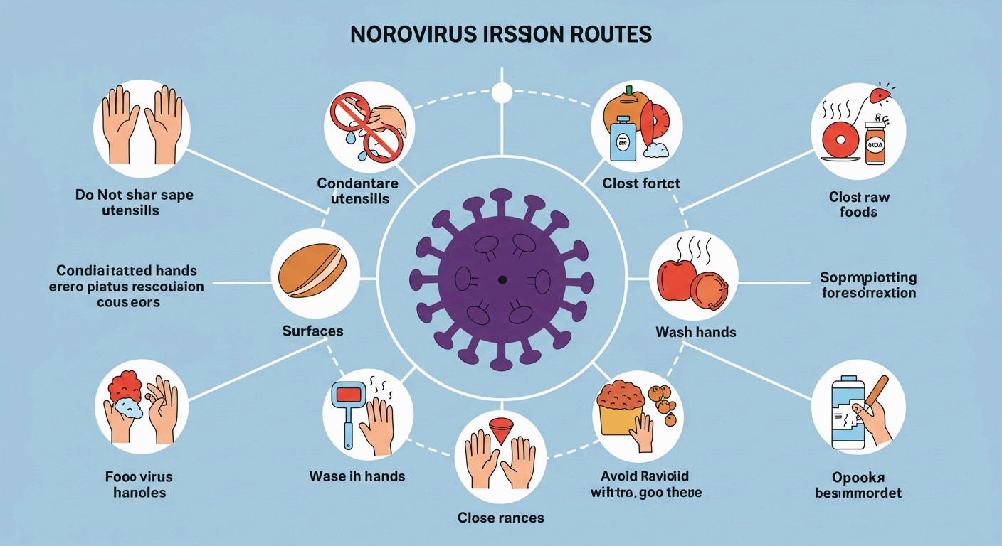 노로바이러스는 전염성이 매우 높은 바이러스입니다. 단 10~100개의 바이러스 입자만으로도 감염이 가능할 정도로 전염력이 강하며, 공공장소나 가정에서 빠르게 퍼지기 쉽습니다.